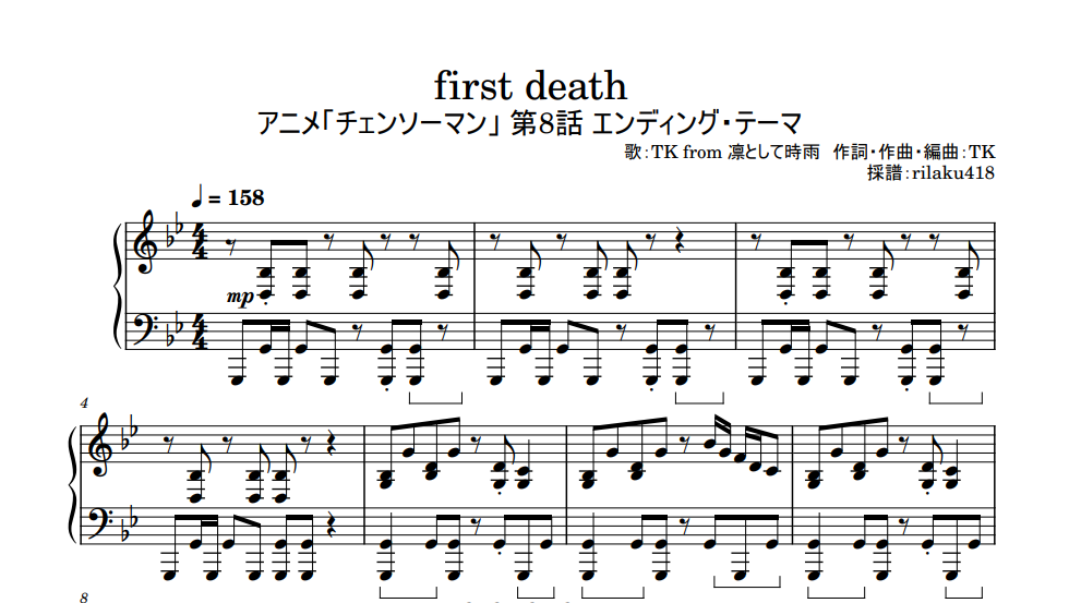 first death - TK from 凛として時雨【アニメ「チェンソーマン」ED】/TV Size/ピアノ・ソロ楽譜です(全3枚)