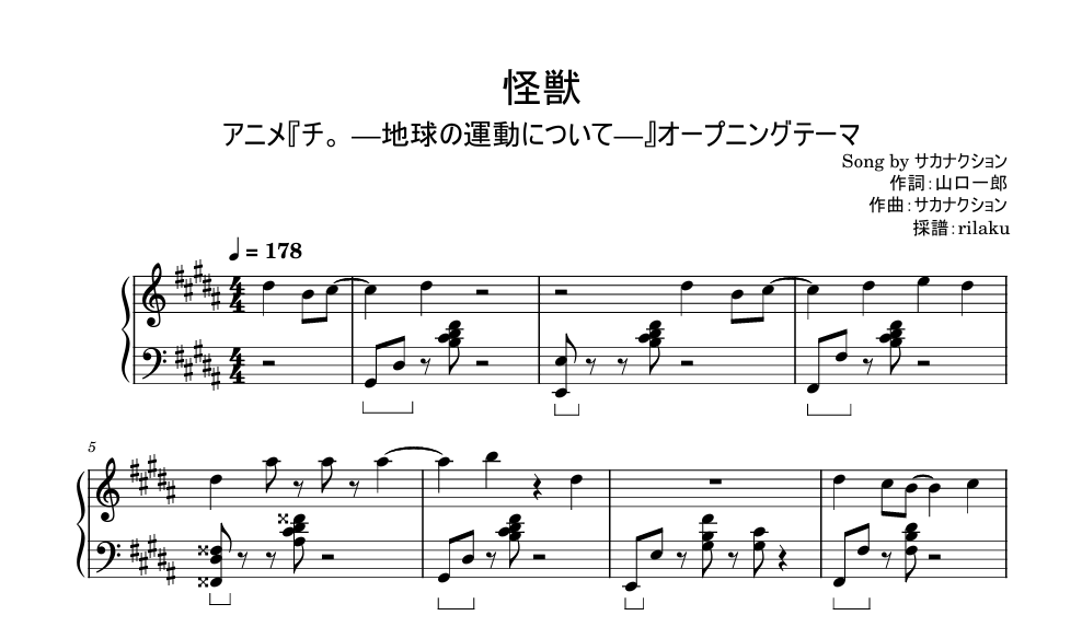 怪獣 / サカナクション【アニメ「チ。 ー地球の運動について」オープニングテーマ】