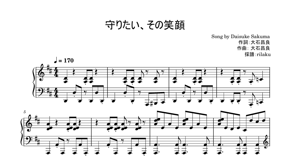 佐久間大介 (Snow Man) - 守りたい、その笑顔¥480+¥480+https://schema.org/InStockjpyrilakurilaku佐久間大介 - 守りたい、その笑顔YouTubeリンク→https://youtu.be/qduDSpL1Zpk下記2点セットでの販売です。・PDF(ピアノソロ楽譜)・MIDI(採譜データ)Name a fair price:¥Buy thisAdd to wishlist New wishlistShareShare on XShare on Facebook Copy linkCopy product URL