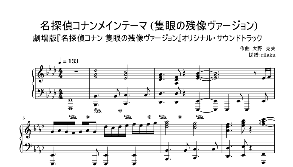 名探偵コナンメインテーマ (隻眼の残像ヴァージョン)【中級ピアノ楽譜】