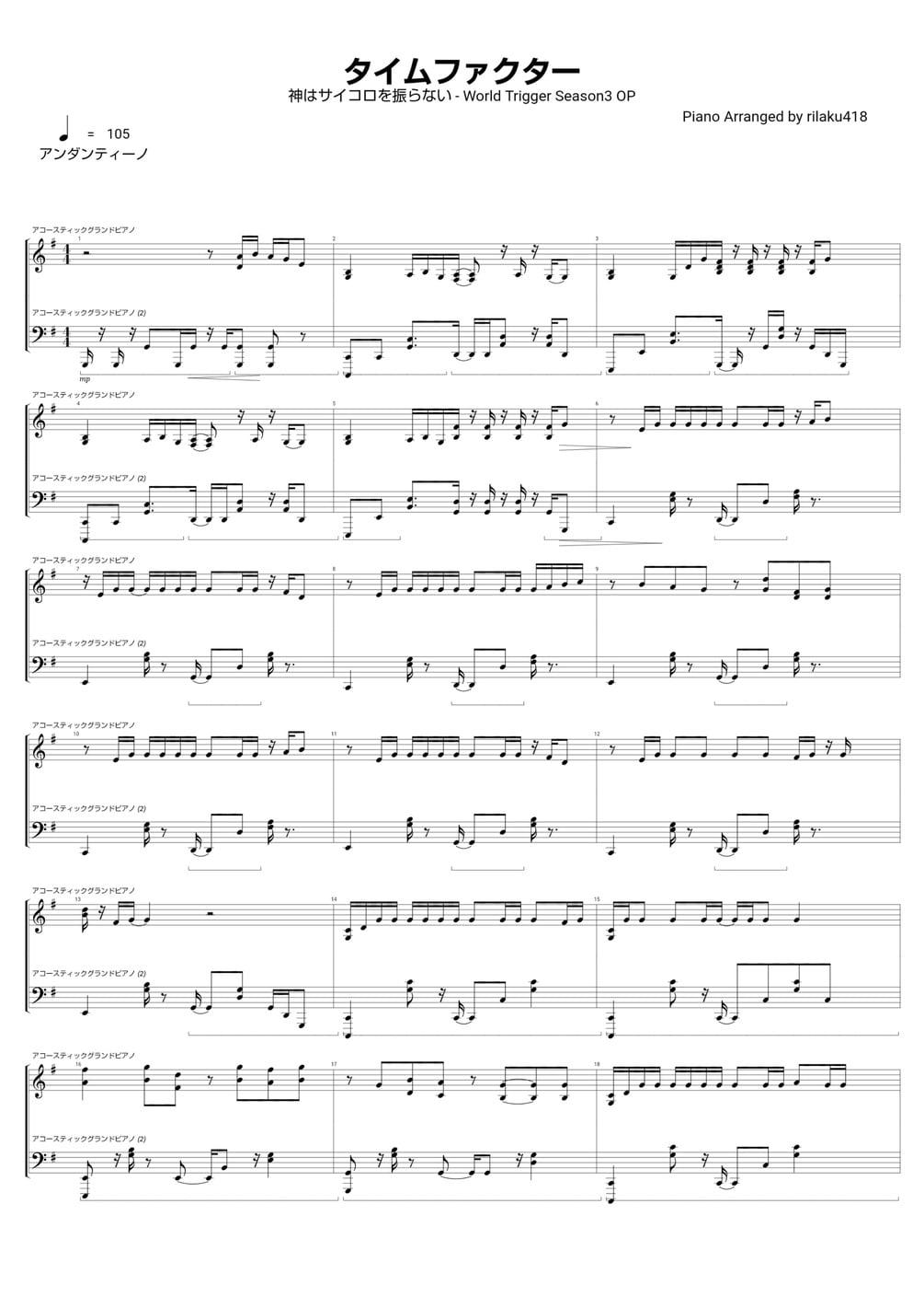 タイムファクター/神はサイコロを振らない【FULL】¥340+¥340+https://schema.org/InStockjpyrilaku0 ratingsタイムファクター/神はサイコロを振らない【FULL】ワールドトリガー 3期 OPピアノ・ソロ楽譜です。Name a fair price:¥I want this!Size1.38 MBLength5 pagesAdd to wishlist New wishlist